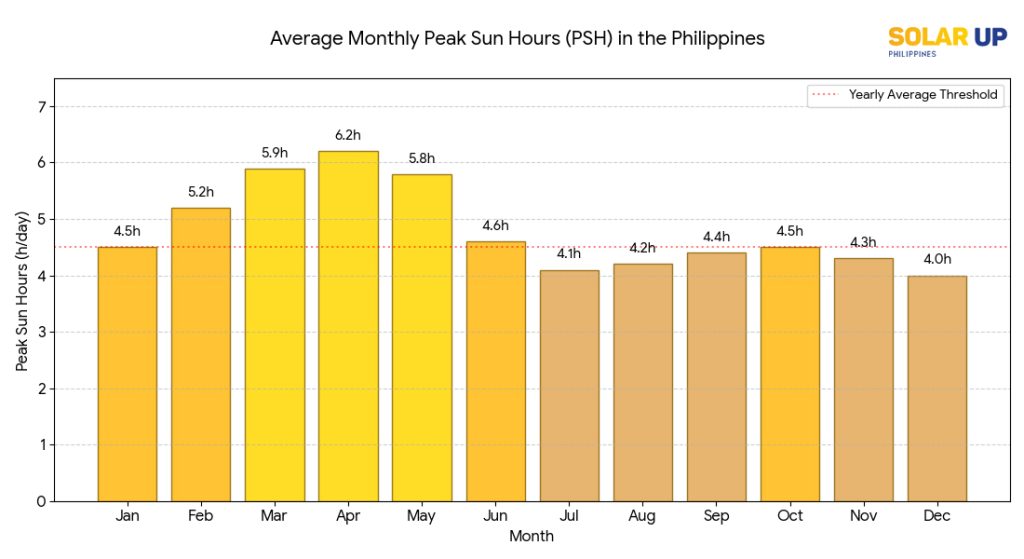 - National Average: The Philippines enjoys 4.5 to 5.2 Peak Sun Hours daily.
